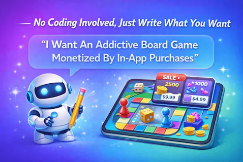 No Coding Involved, Just Write What You Want (e.g., “I Want An Addictive Board Game Monetized By In-App Purchases”)